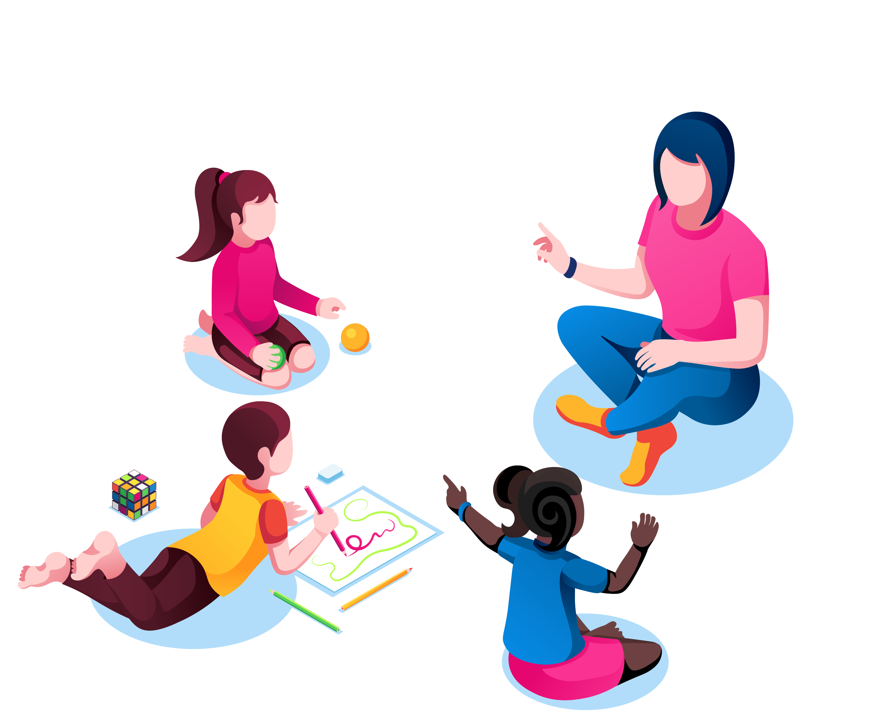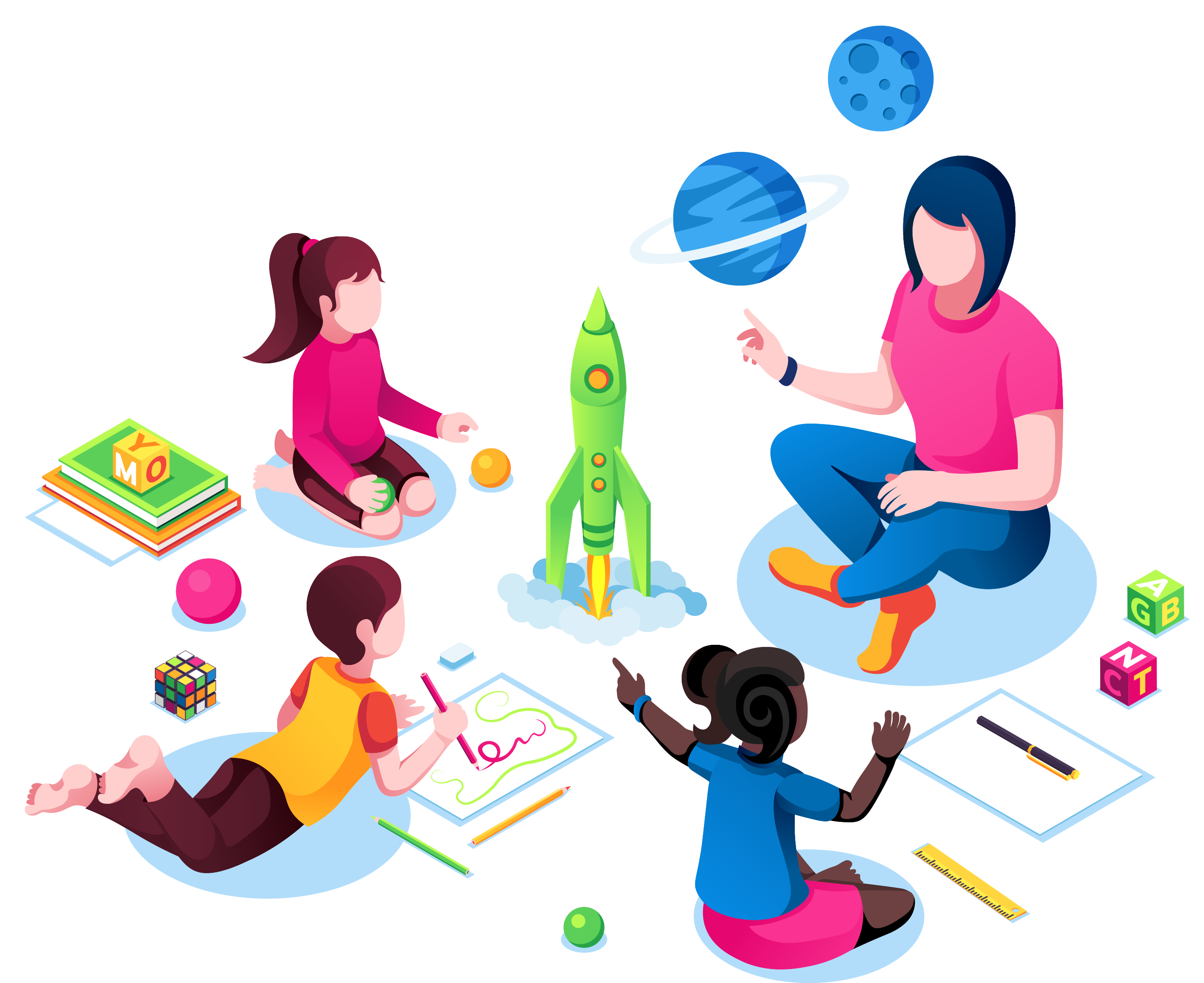 Kinder ab dem vierten Lebensjahr bereiten sich dann bereits mit Vorformen der Schulfächer Mathematik (Mengen und Größen), Musik, Bewegung, Schriftsprache und Naturwissenschaften auf das Lernen in der Grundschule vor.